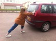 As luck would have it, there was a service station just the other side of a large roundabout. I walked across expecting to return with a can of fuel. At the station, Madame informed me that they had no such thing as a petrol can and I would have to go to the garage five minutes away.  “On foot?” I asked. “By car,” she replied. Not a lot of use to me then. I returned to the car where my daughter had sat stoically ignoring the irritated hoots of drivers irked at having been held up by our broken down car. There was only one thing for it. We would have to push the car to the service station.